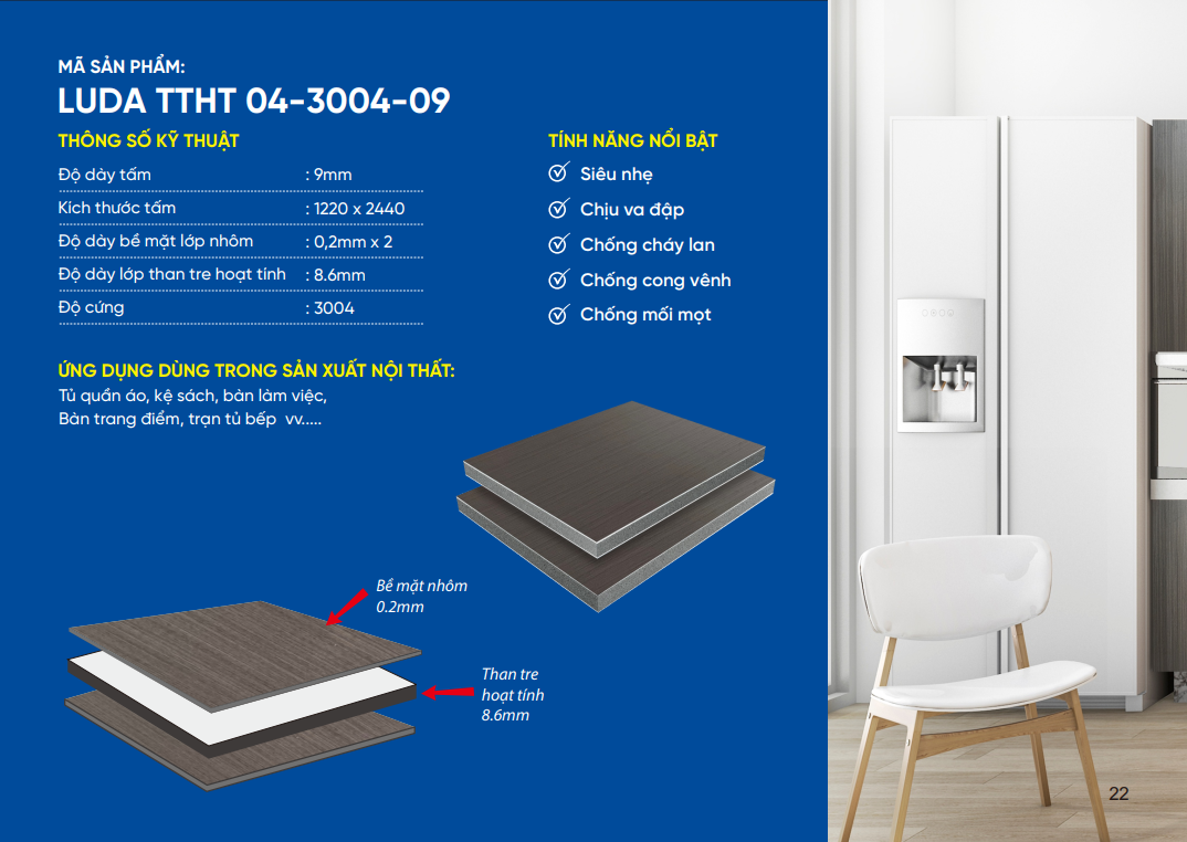 Độ dày tấm: 9mm
